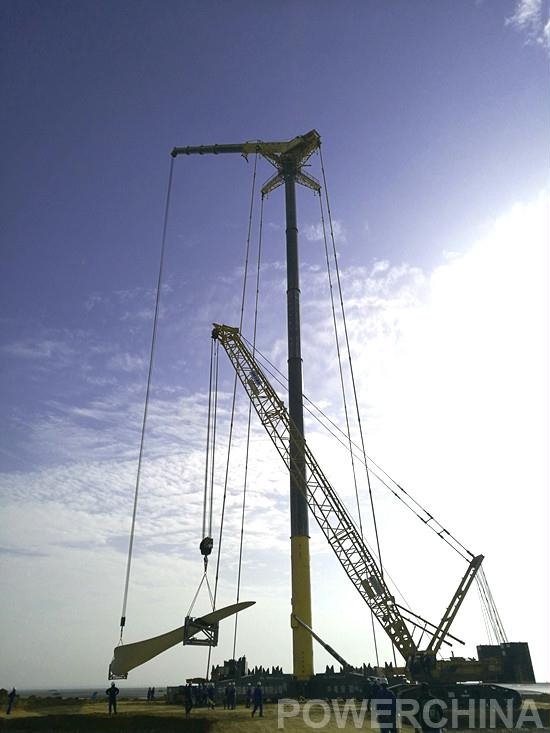在整個吊裝過程中,現(xiàn)場施工人員嚴格按照安全和質(zhì)量施工要求,在地表溫度高達50攝氏度的情況下,施工人員頭頂烈日,不畏酷暑,科學(xué)組織,積極應(yīng)對,每天奔波于風(fēng)機吊裝現(xiàn)場。通過全體人員的共同努力,在合同規(guī)定時間內(nèi)完成了全部吊裝工作。中國電建人的高超技藝和“鐵軍”精神讓OES和設(shè)備廠家紛紛豎起了大拇指,再一次提升了中國電建的品牌。