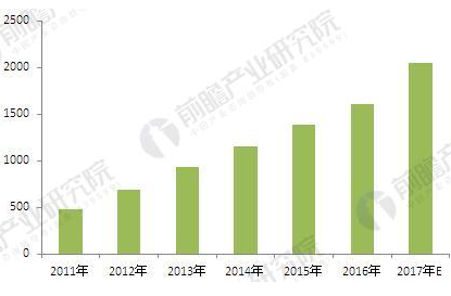 圖表4:2011-2017年中國合同能源管理行業(yè)產(chǎn)值規(guī)模(單位:億元)