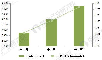 圖表7:中國鋼鐵領(lǐng)域節(jié)能量與相應(yīng)投資額分析與預(yù)測(cè)(單位:億噸標(biāo)準(zhǔn)煤,億元)