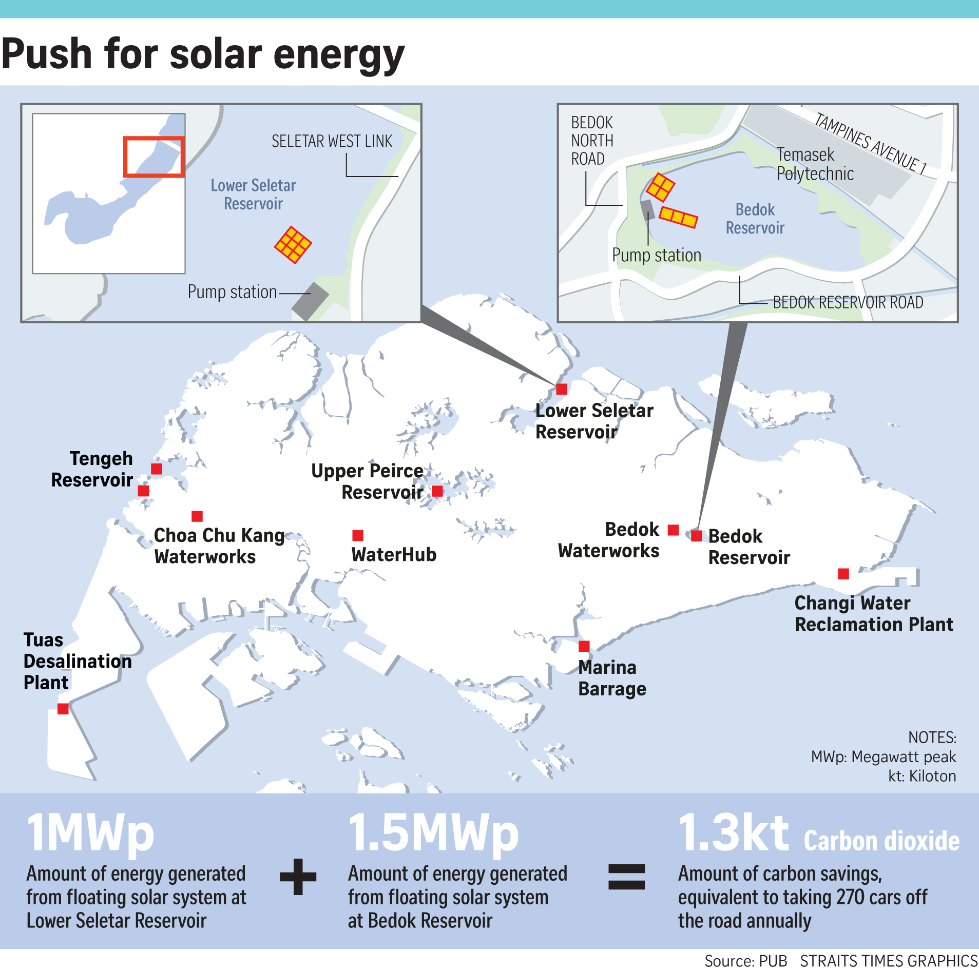 在兩個水庫建立太陽能系統每年將減少PUB的碳足跡,估計每年排放約1.3千噸二氧化碳,相當于每年在道路上行駛大約270輛汽車。