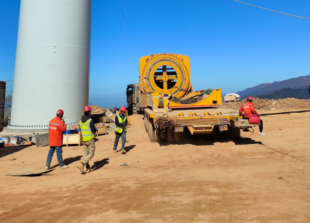 華能吐魯番市100萬千瓦風電項目首套塔筒順利吊裝